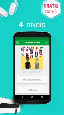 O que distingue Aprender Inglês é a sua metodologia envolvente e prática. Mergulhe em onze jogos interativos, projetados para aprimorar as suas capacidades de audição, escrita e fala de forma divertida e memorável. Sem a necessidade de uma conexão à internet, o aprendizado acompanha o seu ritmo e estilo de vida, disponível onde e quando quiser. Todas as 5.000 frases vêm acompanhadas de pronúncias autênticas de falantes nativos do Reino Unido e transcrições fonéticas detalhadas, garantindo que aprenda a entonação correta desde o início. A progressão é clara e estruturada, com quatro níveis de aprendizagem – iniciante, intermédio, avançado e especialista – que o guiam através de 20 tópicos e 145 subtópicos, cobrindo tudo, desde 'Saudações' a 'Negócios' e 'Viagens', para que esteja sempre preparado para qualquer situação.